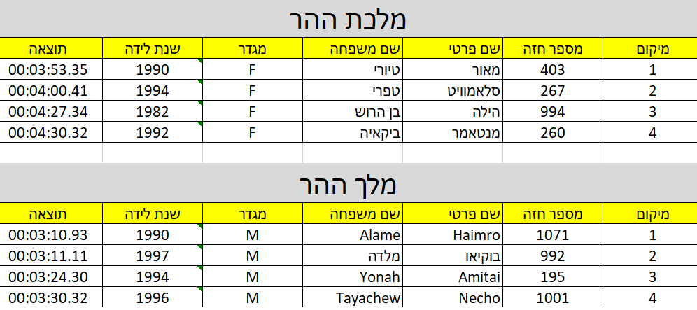 גברים 20-29, 15 ק"מ | 00:47:44 | 4 | 2 | מכבי ת"א | |||